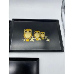 Pre-Owned Vintage Handcrafted Otagiri Original Japan Black Tray 3 Owls Mcm 71/4" x 5 Set Of 3