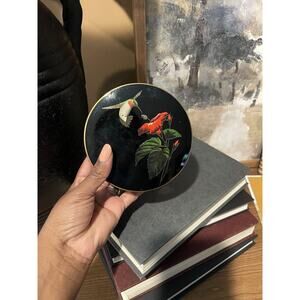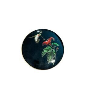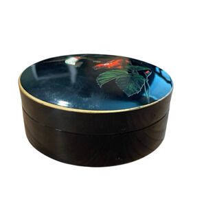 Vintage Otagiri Black Lacquer Coasters Set with Box set of 6 Coasters Hummingbird and Flowers Oriental Home Decor