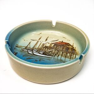 Vintage Otagiri Ceramic Ashtray Harbor Seagulls Boats Japan