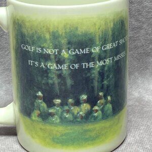 Ideal for golf enthusiasts, this ceramic mug features a vintage golf scene and motivational quote. A collectible piece crafted by Otagiri in Japan.