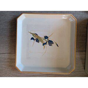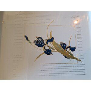 Elegant and functional coaster set featuring a delicate blue iris design with gold trim. Ideal for protecting surfaces while adding a touch of sophistication.
