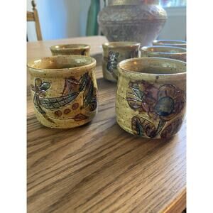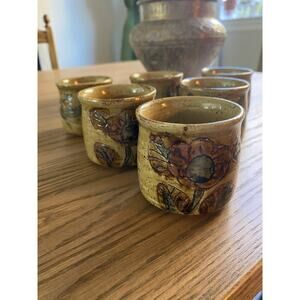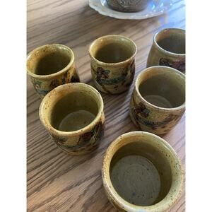 Vintage Otagiri OMC Stoneware Sake Saki Tea Cups Set of 6 Japan Yellow Brown
