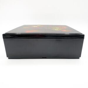 Vintage Otagiri Original Lacquerware Box Faux Lacquer Black with Fans Flowers