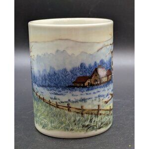 Vintage Otagiri Owl Coffee Cup Tea Mug 10 ounce Barn Farm Landscape Japan