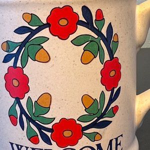 Vintage Otagiri WELCOME Stoneware Floral Wreath Coffee Tea Mug