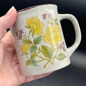Mugs are light tan with brown speckles and a brown rim. Nice vintage stoneware pieces. Mugs do have some crazing, but no other damage. Beautiful floral designs on each one. See images for more info and closeups.