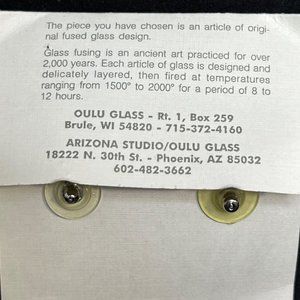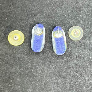 Vintage Oulu Yellow, Green, Red & Blue Glass Fused Pierced Earrings. There are no hallmarks on them.