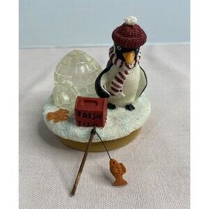 Vintage Our America Penguin Candle Topper for Yankee Candle Winter igloo. The fishing pole broke off of his hand. It can be glued back on.
