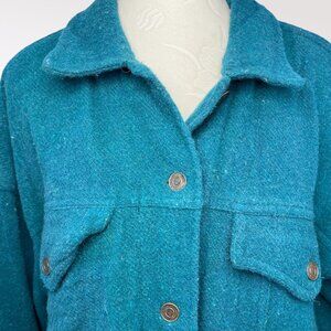 Vintage Outbrook Teal Wool Blend Shirt Jacket Button Front Pockets Size XL