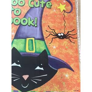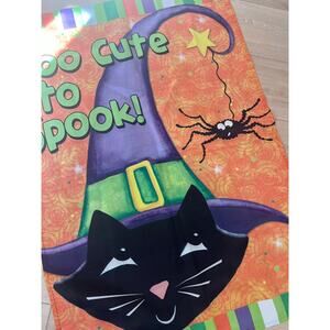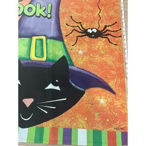 Vintage Outdoor Porch Flag Happy Halloween Black Cat Witch Hat & Spider JL