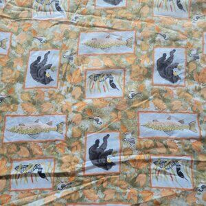 Vintage Outdoor Wildlife Fabric Bears Fish & Birds Print Autumn Shower Curtain