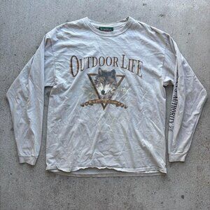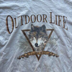 Vintage Outdoors Life Timber Wolf Longsleeve Tan Tee Shirt