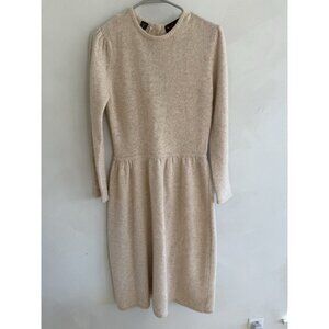 Vintage Outlander Small S LambsWool Angora Sweater Midi Dress Long Sleeve Beige