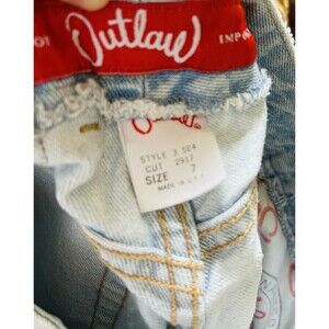 Vintage Outlaw Jean Shorts sz 7 Women’s Denim Hearts 90s Y2K Biker Light Wash
