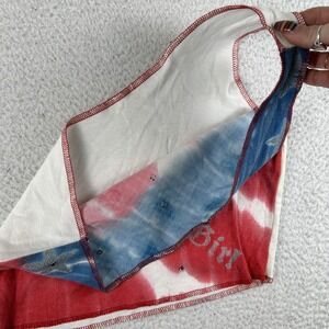 Design: Red, white, and blue tie-dye in a patriotic flag-inspired pattern with glittery silver stars and small rhinestone studs.