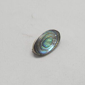 Vintage Oval Abalone Shell Brooch Pin With Silver Backing Unique Iridescent
