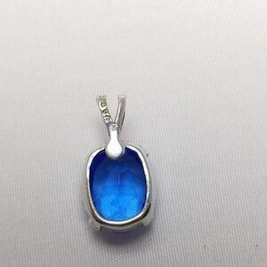 Vintage Oval Blue Rhinestone Pendant Charm, Signed, Small, Estate