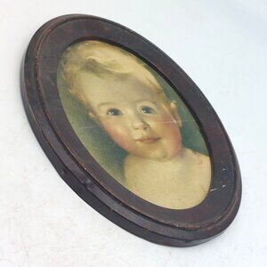 Vintage Oval Framed Baby Portrait Print 11" Height 8" Width