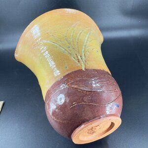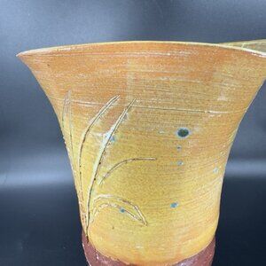 Vintage Oval Hand Made Studio Pottery Vase Etched RedWare Pottery Vessel Vase