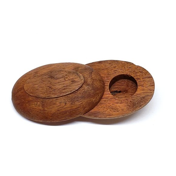 Vintage Oval Hinged Box Trinket Hard Wood Stash 2.5"