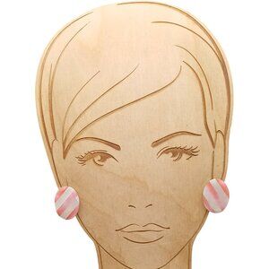 Vintage Oval Mother of Pearl & Pink Shell Striped Inlay Stud Earrings