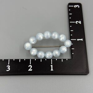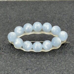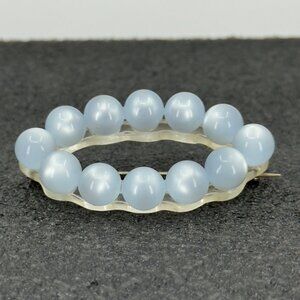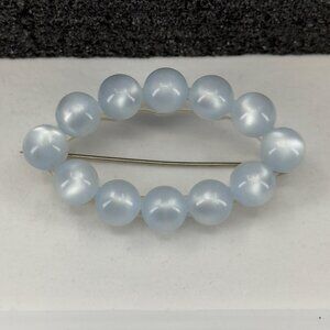 Vintage Oval Pastel Blue Moonstone Bead Brooch Pin Lucite
