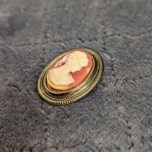 beautiful faux Cameo Brooche set in roped detail Goldtone