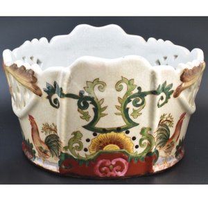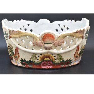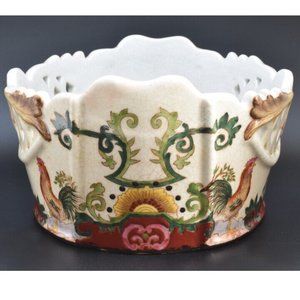Vintage Oval Rooster Decorative Bowl with Diamond Cut-outs