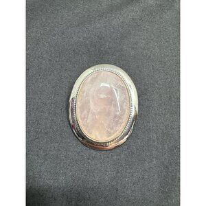Vintage Oval Rose Quartz Silver Tone Brooch