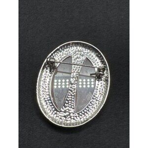 Experience the allure of this vintage brooch, showcasing a captivating rose quartz stone encased in silver tone metal. This accessory adds elegance to any outfit, making it a must-have for jewelry enthusiasts seeking sophistication and timeless charm. Elevate your style with this exquisite piece today.
