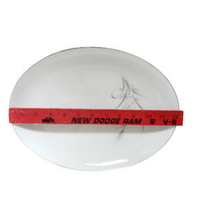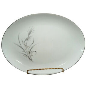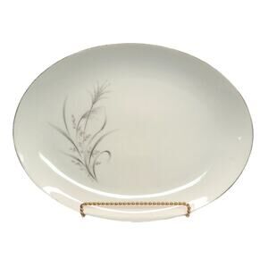 Add a touch of vintage elegance to your table with this Castlecourt oval serving platter. Featuring a delicate wheat spray pattern and a stylish silver rim, this 12-inch platter is perfect for showcasing your culinary creations. The platter is in good condition, but has minor signs of wear.