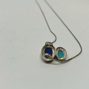 Vintage Oval Shape Turquoise & Lapis 925 Sterling Silver Necklace Size 3/4 inch