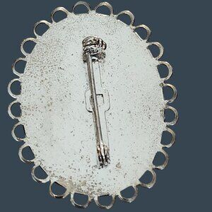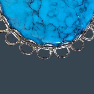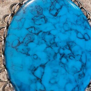 Vintage Oval Turquoise Brooch With Silver-Tone Filigree Frame