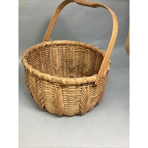 Vintage Oval Woven Basket With Handle - 13x11.5x7”