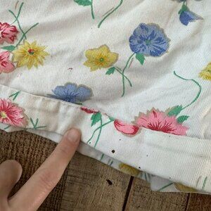 Vintage Overalls & Hat Set For Girls Floral Print White Pink Yellow Blue Size 12
