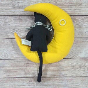 Vintage Overly Raker Plush Black Cat On Moon Checkered Bow Tie Purple Stars 11"