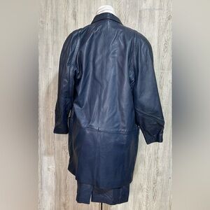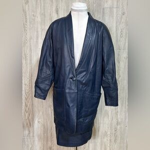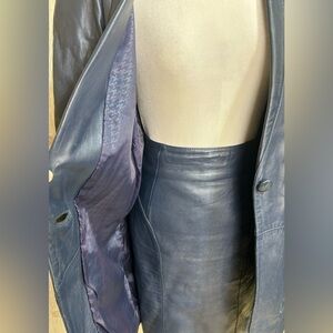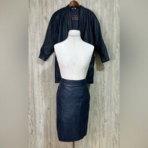 Vintage Oversized Blue Leather Mario Zarelli Blazer and Pencil Skirt Set