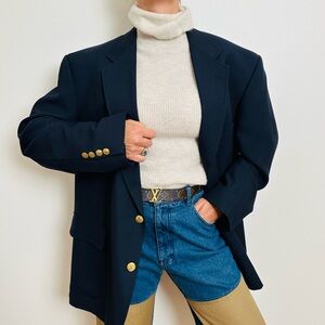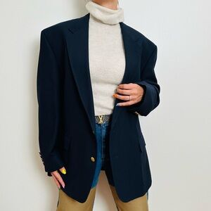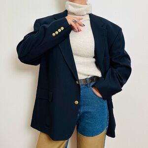 Vintage Oversized Classic Navy Blazer Jacket with Two Gold Buttons