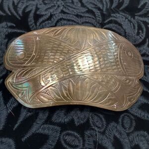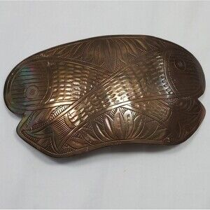 Vintage Oversized Etched Fish Brass Belt Buckle Made In India