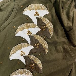 Vintage Oversized T Shirt Women's Short Sleeve Green Gold One Size