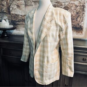 Vintage Oversized White & Tan check Blazer by Liz Wear size Small