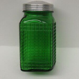 This is a really nice forest green Waffle Pattern Spice Shaker made by Owens Illinois. This Shaker measures 5 inches high X 2 inches square. The glass shaker is in very good condition with no chips, cracks or cloudiness. The metal lid is a new replacement lid which is in very good condition with no dents or damage. This shaker has the large, rectangular shaped space for a label, but we do not have labels. Be sure to search our other vintage kitchenware items available.
