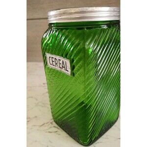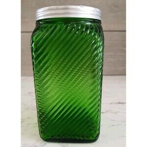Vintage Owens Illinois Green Ribbed Glass Cereal Canister Depression Glass