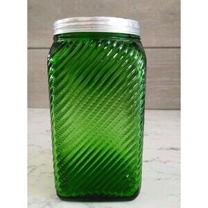 Vintage Owens Illinois Green Ribbed Glass Cereal Canister Depression Glass