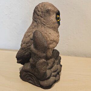 Vintage Owl Branch Figurine Mid Century Modern Tabletop Decor Small Yellow Eyes