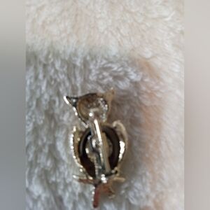 Vintage Owl Brooch Pin Brown Marbled Cabochon Jelly Belly Like