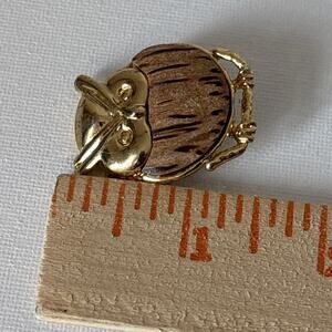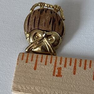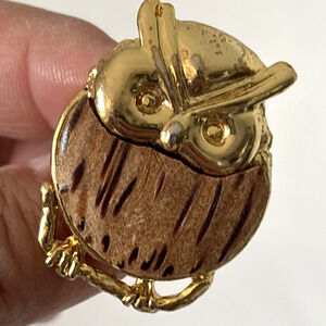 Vintage Owl Brooch Pin Gold Tone MCM Wood Belly Wise