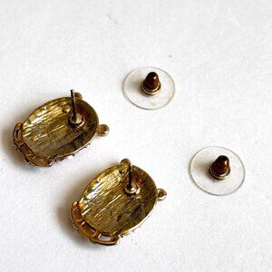 Vintage Owl Earrings Stud Gold Tone Rhinestones Enamel Metal 0.75" Fall Glamor