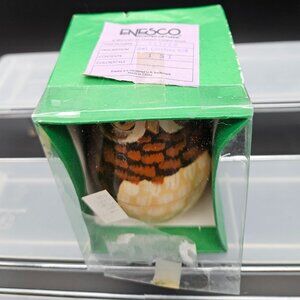 They are in its original box and has its original Enesco sticker stating Enesco Designed Gifts, Item No. 711799, Description Owl Covering Box, Enesco is a registered US trademark, Made In China.