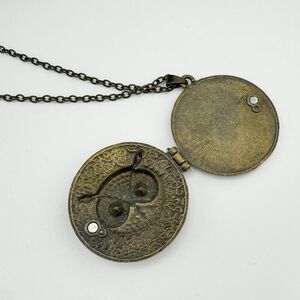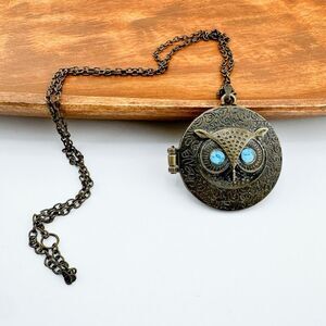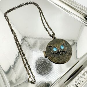 Vintage Owl Locket Necklace Mystical Charm Cottagecore Bohemian Blue
